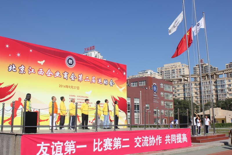 上午九時,運動會在莊嚴的國歌聲中開幕。劉經綸會長在開幕式致辭中表示,北京江西企業商會在國慶節前夕舉辦運動會,既是對會員身體素質、運動技能、拼搏精神的一次檢驗,也是對會員企業職工協作意識、團隊精神的一次檢閱,為廣大會員同臺競技、互動交流、共同促進創造了一次良好機會,同時以這種團結、務實的形式慶祝國慶節。劉會長希望全體運動員發揚團結、友誼、進步的奧林匹克精神,頑強拼搏,服從裁判,賽出水平,賽出風格,并要求全體裁判員,嚴守規程,公正裁決,公平、公正地做好評判工作。裁判員代表郭鵬和運動員代表蘇清紅分別向大會莊嚴宣誓。商會常務副會長、北京力邁外國語學校董事長黃磊宣布比賽正式開始。