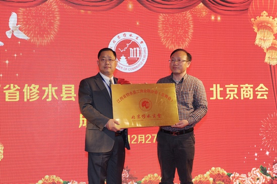 12月27日下午,江西省修水縣工商聯(總商會)北京商會成立大會在北京江西大酒店成功舉行。全國工商聯會員部副部長李樹林,國家發改委國際合作中心教授鄧智華,江西省政府駐北京辦事處副處長、北京江西企業商會秘書長謝忠寶,九江市政府副秘書長、駐京辦主任吳澤潯,九江市工商聯秘書長歐陽克,修水縣委常委、副縣長柯景坤等領導嘉賓和修水籍在京政界、商界、文化界等領域的200多位鄉友出席會議。修水縣政協副主席、工商聯主席丁喜春主持會議。