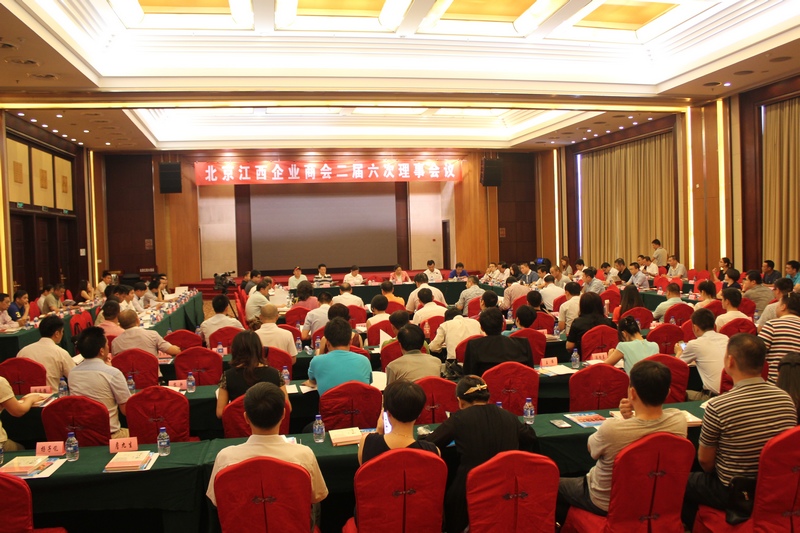 2015年7月7日下午,北京江西企業商會二屆六次理事會議在北京江西大廈召開。全國政協經濟委員會原副主任、國家統計局原局長、北京江西企業商會顧問李德水,江西省政府駐京辦主持工作的黨組副書記、副主任江枝英,北京江西企業商會會長劉經綸,執行會長王永紅,常務副會長曾鈁、熊炎飛、敖小強、胡清華、賴日盛、湯蘇云、鄧文云、潘建紅、黃磊、黃紹武、袁志滮、胡連榮、傅小林,副會長楊文龍、張春華、王才亮、吳朝暉、樊考平、金浙寧、曾志榮、吳錦鋒、熊建偉、徐振天、余坦仁,秘書長謝忠寶,以及商會常務理事、監事、理事等130多人出席會議。常務副會長章凌波主持會議。