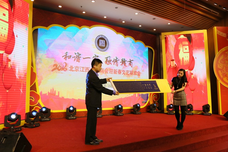 1月16日下午,北京江西企業商會主辦的“和諧一家 融情贛商”2016迎新春文藝聯歡會在北京江西大酒店成功舉辦。全國政協經濟委員會原副主任、國家統計局原局長、北京江西企業商會顧問李德水,江西省地方稅務局局長張和平,江西省政府駐京辦黨組副書記、副主任、北京江西企業商會名譽會長江枝英,江西省政府駐京辦黨組成員、副主任高延平,經濟協作處處長皮建成,以及江西各地市駐京聯絡處負責人和北京江西企業商會會長劉經綸,監事長易斌,常務副會長熊炎飛、肖民贊、胡清華、黃磊、彭春生、潘建紅、鄧文云,副會長張春華、萬齊勇、王才亮、朱衛平、范立棟、吳朝暉、樊考平、汪洪峰、張國義、楊光、劉應龍、涂根印、皮燕娟、卜海國、魏林華、熊建偉等300多位商會會員企業家代表歡聚一堂,暢敘鄉情,把盞友誼,共話未來,其樂融融,喜氣洋洋。