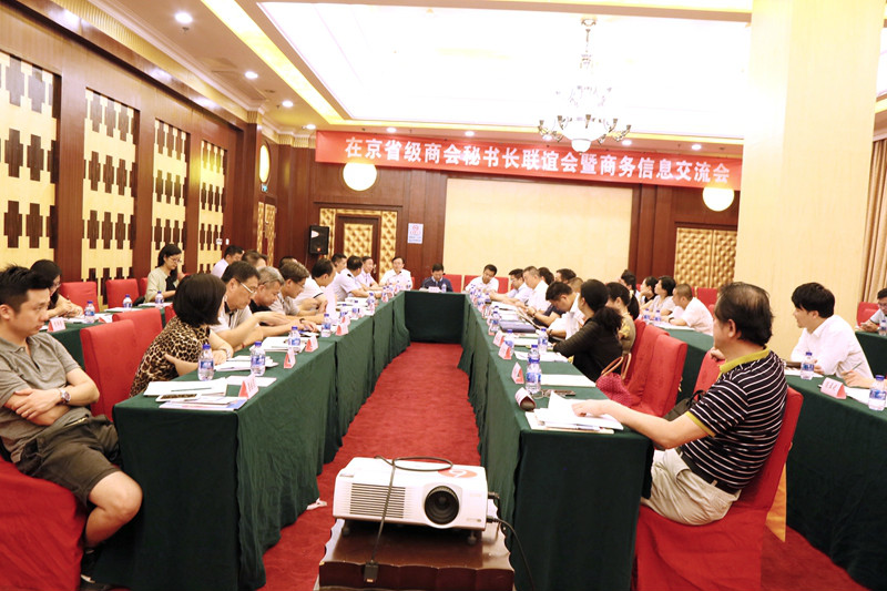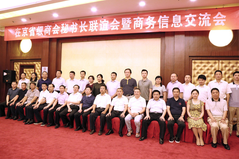 2016年7月3日,由北京江西企業商會主辦的在京省級商會秘書長聯誼會暨商務信息交流會在北京江西大酒店成功舉行。來自福建、黑龍江、湖北、江蘇、廣西、上海、廣東等20多家在京異地省級商會秘書長或代表歡聚一堂,就商會發展和商務合作相關議題進行座談交流。北京市工商聯副主席鄭勇男,江西省政府駐京辦黨組成員、副主任高延平,經濟協作處處長皮建成,駐京機構黨委副書記劉禮火等領導和嘉賓出席會議。