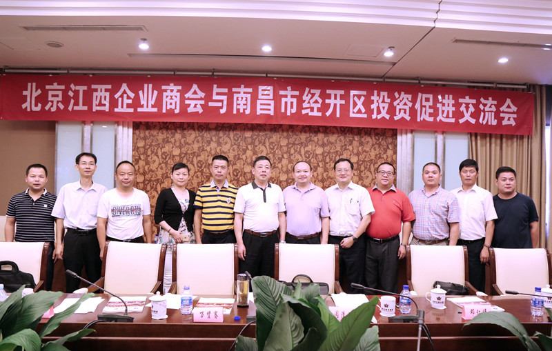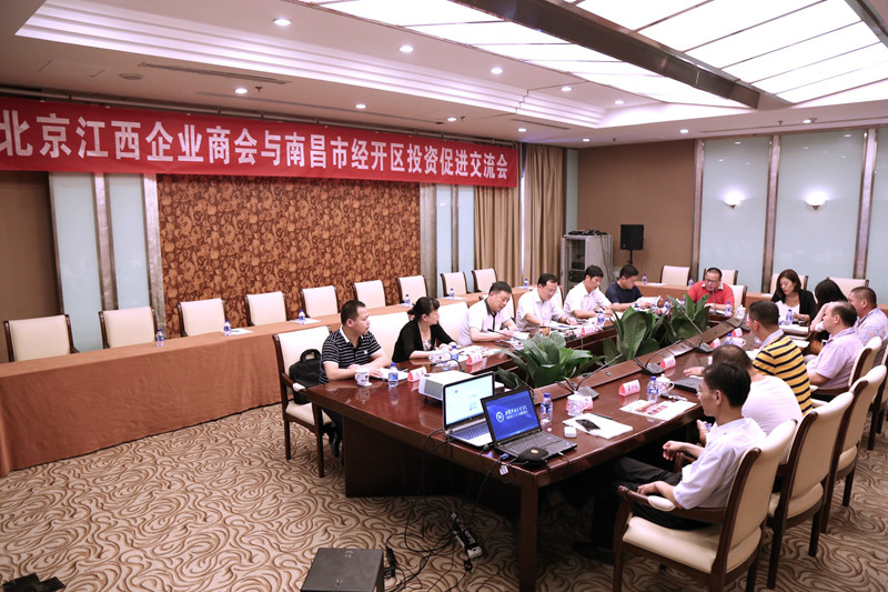 2016年8月5日,國家南昌經濟技術開發區管委會副主任、桑海產業園黨委書記兼管委會主任萬賢賽,桑海產業園管委會副主任閔清源、投資促進部部長許清和副部長鄧仁偉等一行六人蒞臨北京江西企業商會考察交流。江西省政府駐京辦經濟協作處處長皮建成,商會輪值副會長涂根印,理事晏倫裕、何權,秘書長謝忠寶、副秘書長毛祖棠等熱情接待了來訪客人,并進行了座談交流。