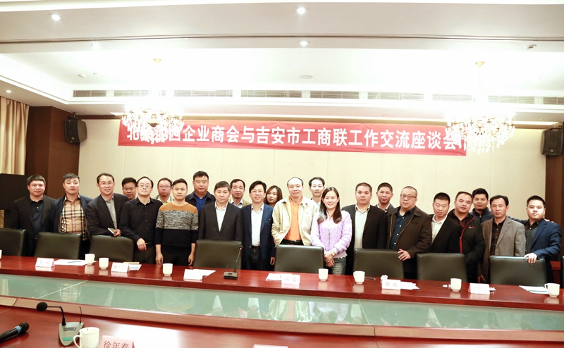 2016年10月19日,吉安市工商聯(lián)主席徐年春,副主席張建軍、周渭華,秘書長鄒江南等一行蒞臨北京江西企業(yè)商會(huì)考察交流。北京江西企業(yè)商會(huì)會(huì)長劉經(jīng)綸,輪值會(huì)長黃磊,常務(wù)副會(huì)長熊炎飛,副會(huì)長何權(quán),監(jiān)事周會(huì)生,常務(wù)理事李湘,理事湯軍、曾慶福、蔣文平、王平、謝才豐、周輝,秘書長謝忠寶、副秘書長毛祖棠、宣傳部長冷科生,以及吉安市政府駐京聯(lián)絡(luò)處主任胡志敏和部分吉安籍在京鄉(xiāng)友等熱情接待了來訪客人,并進(jìn)行了座談交流。