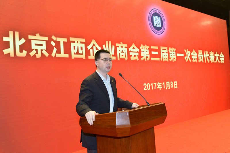 2017年1月8日,北京江西企業商會第三屆第一次會員代表大會在遠望樓賓館召開。江西省委常委、省委統戰部部長陳興超,江西省委原書記舒惠國,國家統計局原局長李德水,北京市投資促進局局長周衛民,中國人民大學黨委常委、副校長吳曉求,江西省政府副秘書長、駐京辦主任江枝英,江西省委統戰部副部長、省工商聯黨組書記李青華,北京市工商聯黨組成員、副主席趙秀德,江西省商務廳副廳長陶莉萍,北京市民政局社團管理處處長韓磊,以及全國工商聯第九屆副主席、贛商聯合總會會長、科瑞集團董事局主席鄭躍文,全國工商聯第十屆副主席、用友集團董事長王文京等近500位在京贛商企業家出席大會。