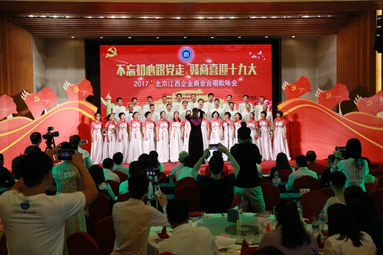 當天晚上,舉行了“不忘初心跟黨走 贛商喜迎十九大”—2017’北京江西企業商會合唱歌詠會頒獎晚會。與會嘉賓同商會會員企業家歡聚一堂,敘鄉情、話友誼、謀發展,其樂融融。晚會在歡快、祥和的氣氛中圓滿落幕。